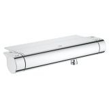 Intuitive user-friendly design meets all-round performance you can trust! With the water-saving GROHE Grohtherm 2000 Cosmopolitan it has never been easier to enjoy a luxurious shower. Thanks to GROHE CoolTouch technology the surface of the thermostat does not heat up – giving your bathroom a relaxing spa-style ambience – and GROHE TurboStat instantly delivers water at your desired temperature!It’s constant hot water, too, with no sudden bursts of cold if the pressure suddenly changes. It also has ergonomic Aqua Paddles for effortless handling and a handy tray for storage. Reliable and super comfortable for you to use, this thermostat also comes with a GROHE SafeStop feature set at 38°C, which prevents children from turning up the temperature too high. With integrated GROHE EcoJoy technology it has a water-saving button that reduces water consumption by up to 50% – a great and easy way for you to save a precious natural resource as well as money! It also has a scratch resistant GROHE Starlight chrome finish that will sparkle for years and flexible silicone nozzles for super easy cleaning and removal of limescale.