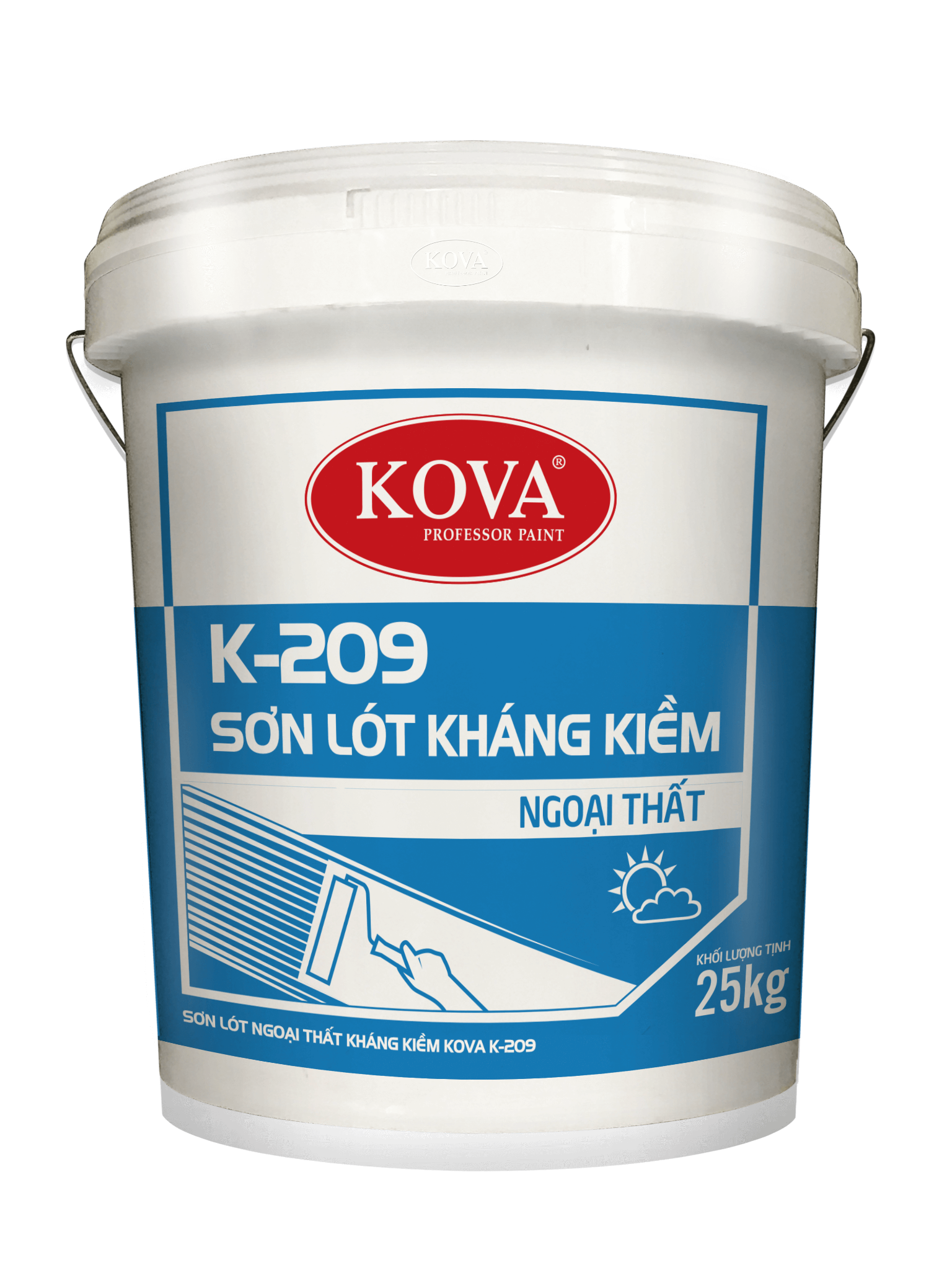 - Bước 2: Thi công 01 lớp sơn lót kháng kiềm K-209. Để lớp sơn lót khô từ 3-4 giờ mới phủ các lớp sơn trang trí khác.